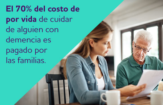De los costos de toda la vida de cuidar a alguien con demencia, el 70% es soportado por las familias — o a través de gastos de salud y cuidado de largo plazo fuera del bolsillo o del valor del cuidado no remunerado.