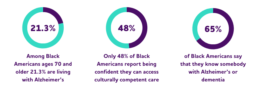 Among Black Americans ages 70 and older, 21.3% are living with Alzheimer's, a type of dementia that affects memory, thinking and behavior. Learn what the Alzheimer's Association is doing to provide care and support and address disparities for African Americans living with Alzheimer's or another dementia.