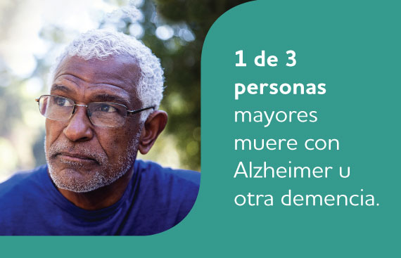- 1 de 3 personas mayores muere con Alzheimer u otra demencia. Mata a más personas que el cáncer de mama y el cáncer de próstata combinados.
