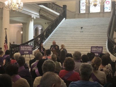 Donate NowRosa Mezquita and her son Dionis shared their Alzheimer’s story in the Massachusetts State House earlier this year as Alzheimer’s Association advocates. They fight for an end to Alzheimer’s in honor of Persio, Rosa’s husband and Dionis’ father, who they lost to the disease.
