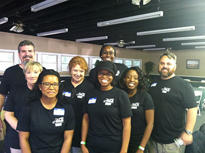 Featured in the photo in this post are Vonnetta (front row, left), with her sister Gail Benjamin (center) volunteering at an Alzheimer's Association event.