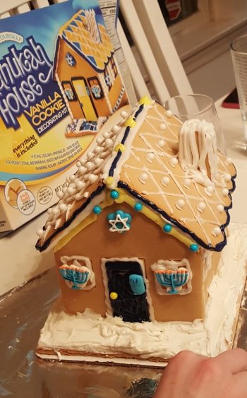 Photos: 1. Linda before Thanksgiving celebrations. 2. Linda with her daughter. 3. Linda decorating her Hanukkah cookie house.