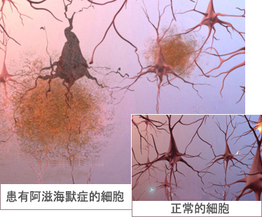 科學家至今仍不能肯定是什麼因素導致患有阿滋海默症的腦細胞死亡和腦組織流失,但相信與腦內的斑塊及壞死神經纖維纏結有莫大的關連。