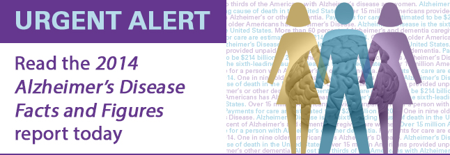 | Dear Friend, The Alzheimer's Association 2014 Alzheimer's Disease Facts and Figures report released today reveals startling statistics on the ever-growing impact of Alzheimer's disease on our nation, including new information on growing death rates, the cost of the disease and the disproportionate burden of Alzheimer's disease on women. |