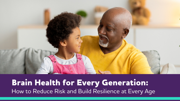 Join us on Saturday, May 23 from 1 p.m. - 3 p.m. for Brain Health for Every Generation: How to Reduce Risk and Build Resilience at Every Age. This family-friendly event — offered virtually and in-person — will bring together experts and neighbors to discuss practical tips for reducing risk and building resilience and share experiences and ideas to better support families and individuals affected by Alzheimer's in our community. Register for the event today.