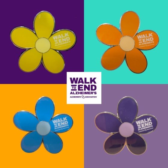 We’ll send you the color flower pin that matches your connection to the cause as indicated on the Walk registration form. Just like the flowers provided for the Promise Garden on Walk day, each color represents participants’ connection to Alzheimer’s — their reasons to end the disease.