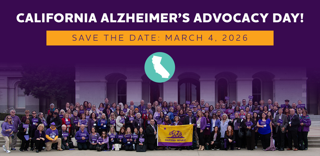 Hear from our bipartisan legislative champions, get the latest updates on bills that support people living with dementia and their family caregivers, and meet with your state legislators. Meet with legislators and share your story to demand better care and support for Californians living with Alzheimer’s and all other dementias.
