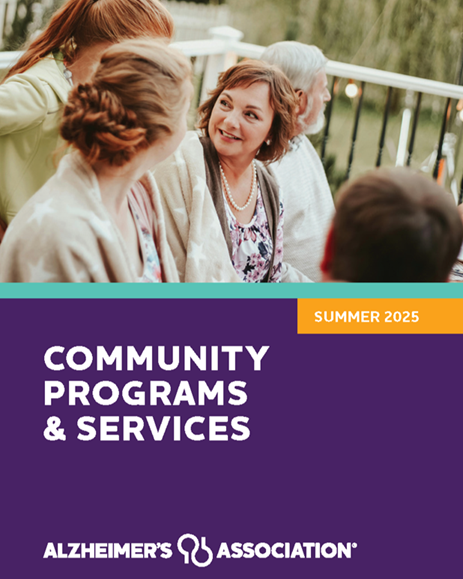 The Western New York Chapter publishes a Community Programs and Services Guide four times a year, listing education classes, support groups and other programs. The guide is provided free of charge to our community partners and to anyone who requests a copy be mailed to them. To request a hard copy, call 716.626.0600 ext. 8982 or email program.wny@alz.org.